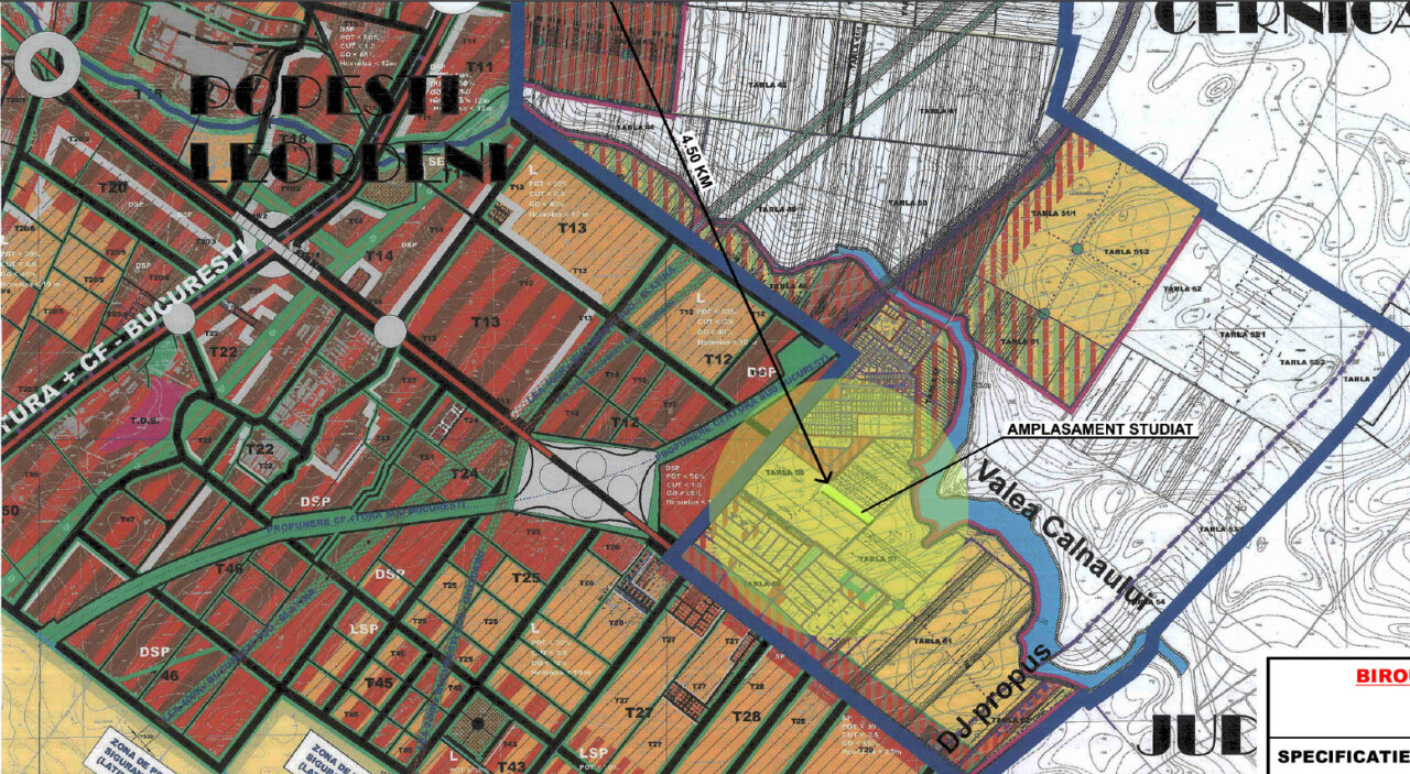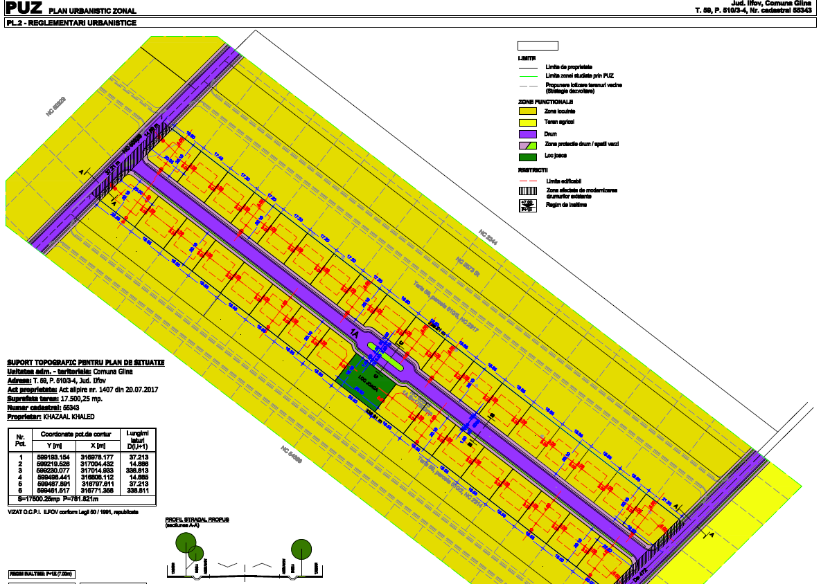 Popesti – Leordeni, Zona Cartier Rezidential Allegria, teren intravilan in suprafata 17500 mp, lotizat in 36 loturi pentru case, (loturi 345 mp, 375 mp, 400 mp), PUZ aprobat, RI = P+1+M (7.00m), CUT = 0,7, POT = 35%.